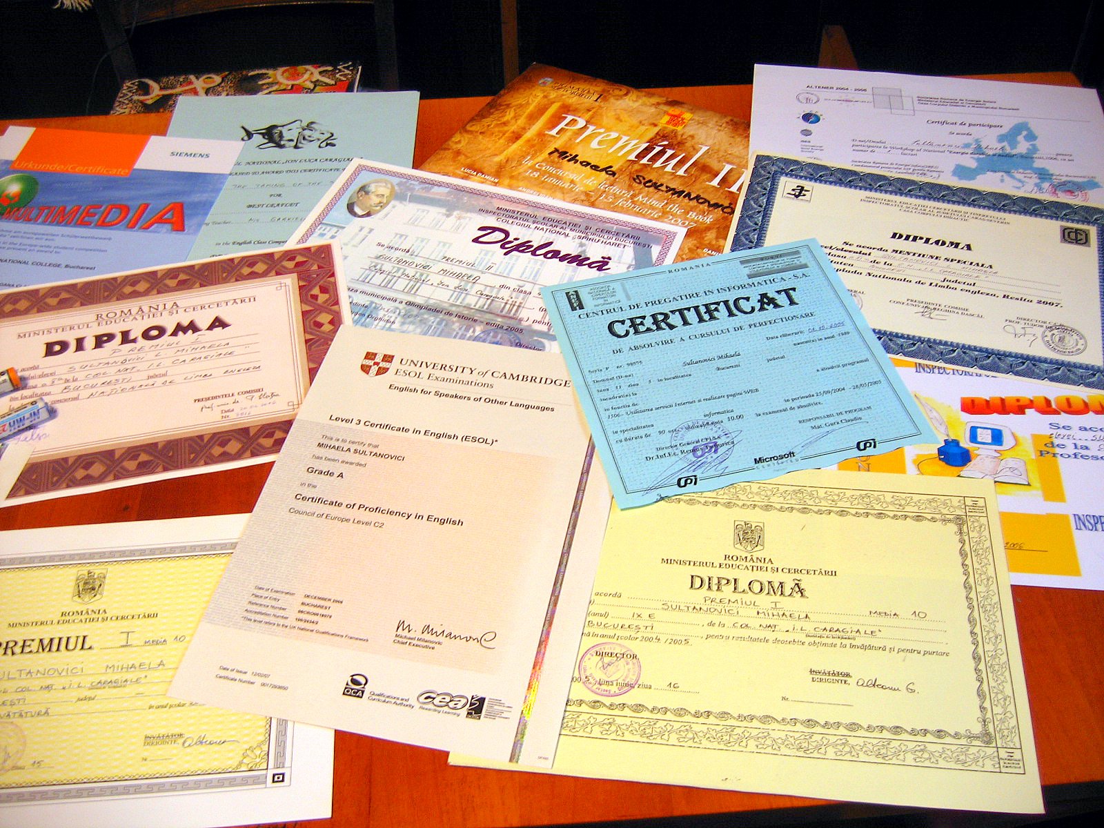 Diplomă DELF la nivel B2 (2007); Diplomă DELF la nivel B1 (2007).